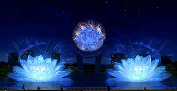 南靖縣音樂噴泉根據聯覺現象來組態各種水型,好比舞蹈展現出震撼、思念、抒情、喜悅、激昂、悲哀、歡快、熱烈等,噴泉造型與音樂旋律、燈光同步結..